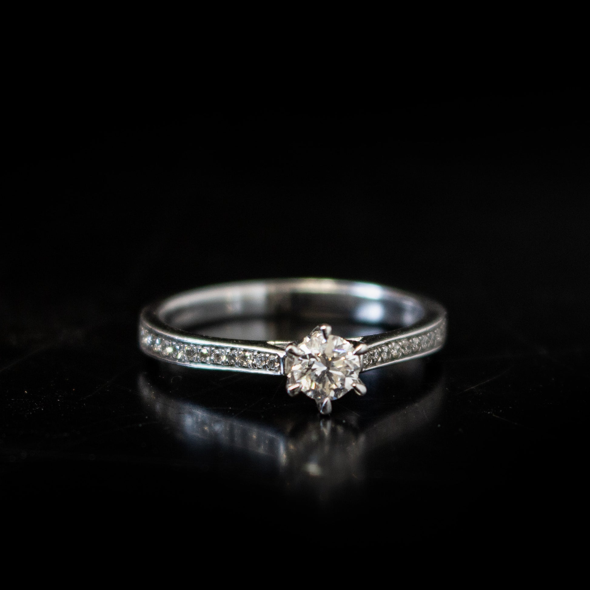 A 9ct White Gold 0.40ct Diamond Ring Finished With Encrusted Diamonds To The Sides Of The Ring.