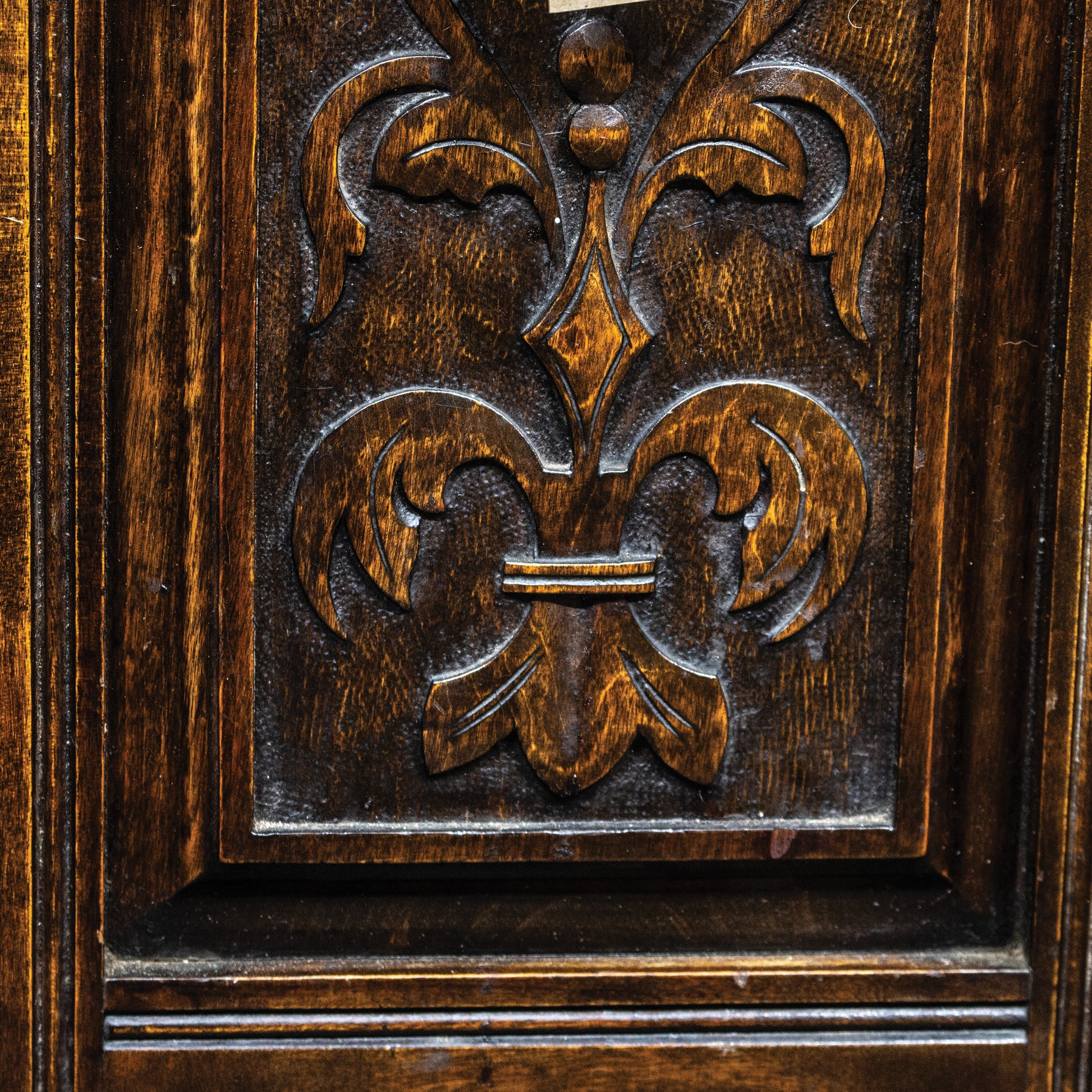 An Antique Solid Oak Coal Scuttle With a carved front door that pulls forward to reveal a liner inside. Which is nice to see as quite often these are discarded. The wood has a lovely rich colour to it and the whole item is in a lovely condition for its age. Dimensions of the top 38 cm square height 55cm