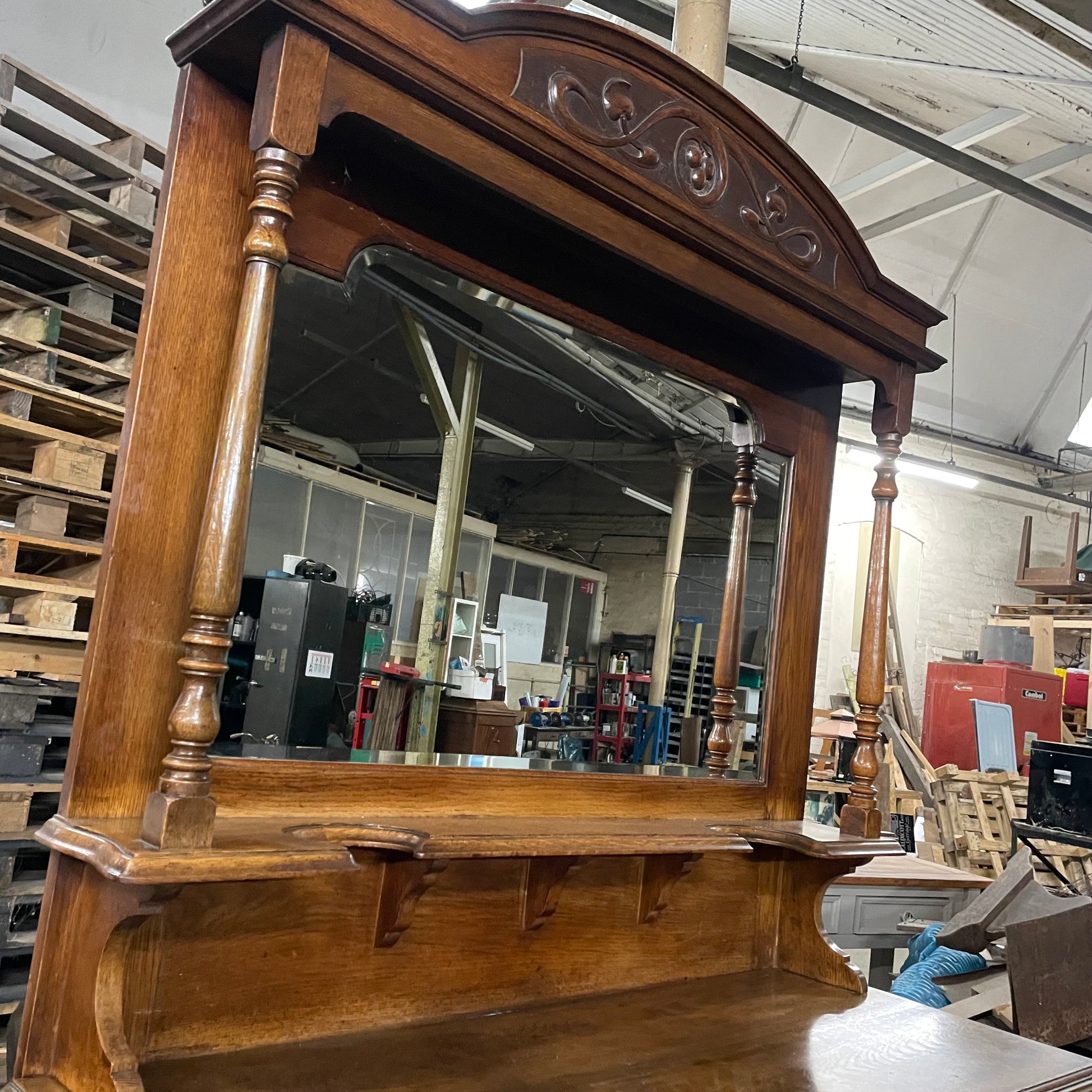 Antique Vintage Early 20th Century Solid Oak Sideboard / Dresser