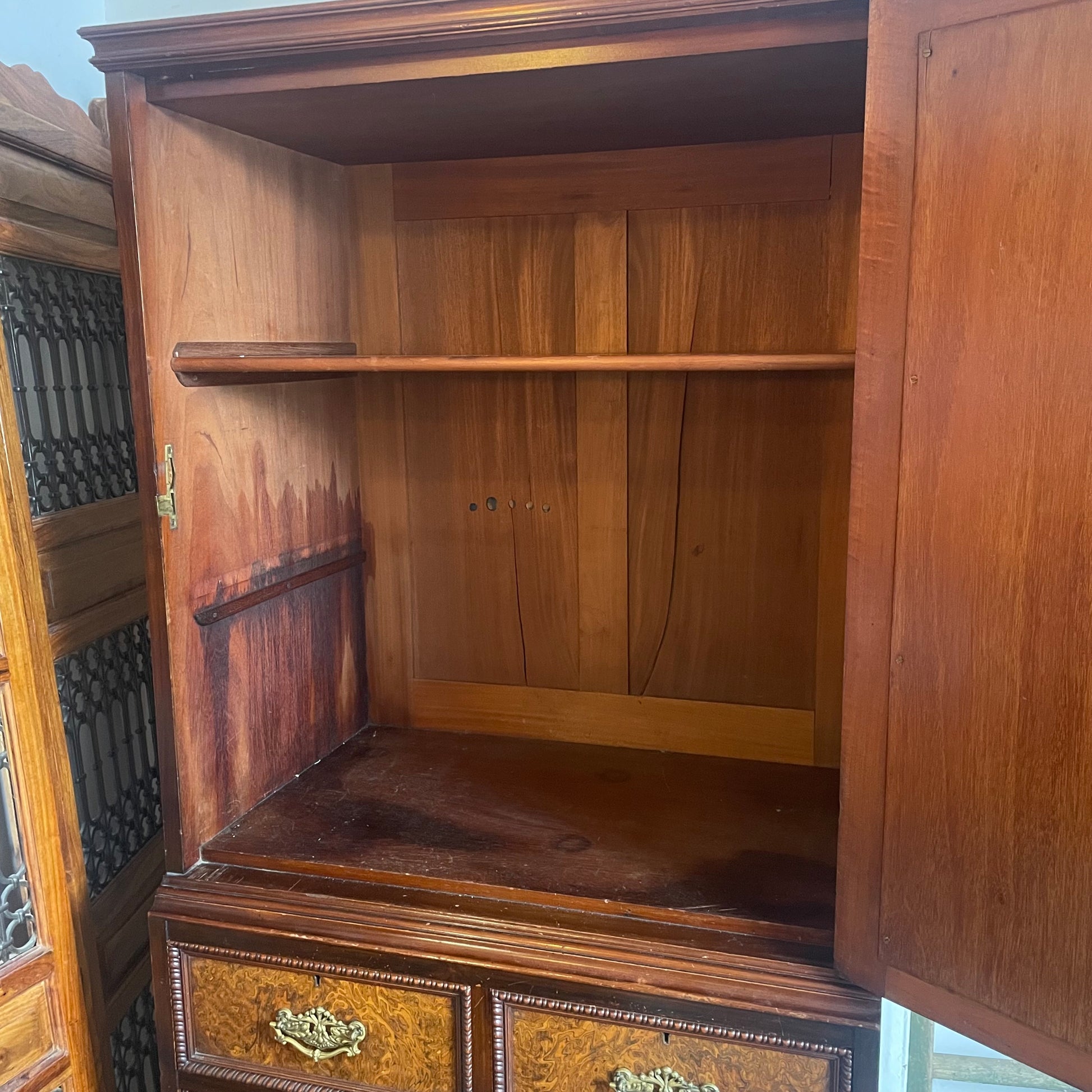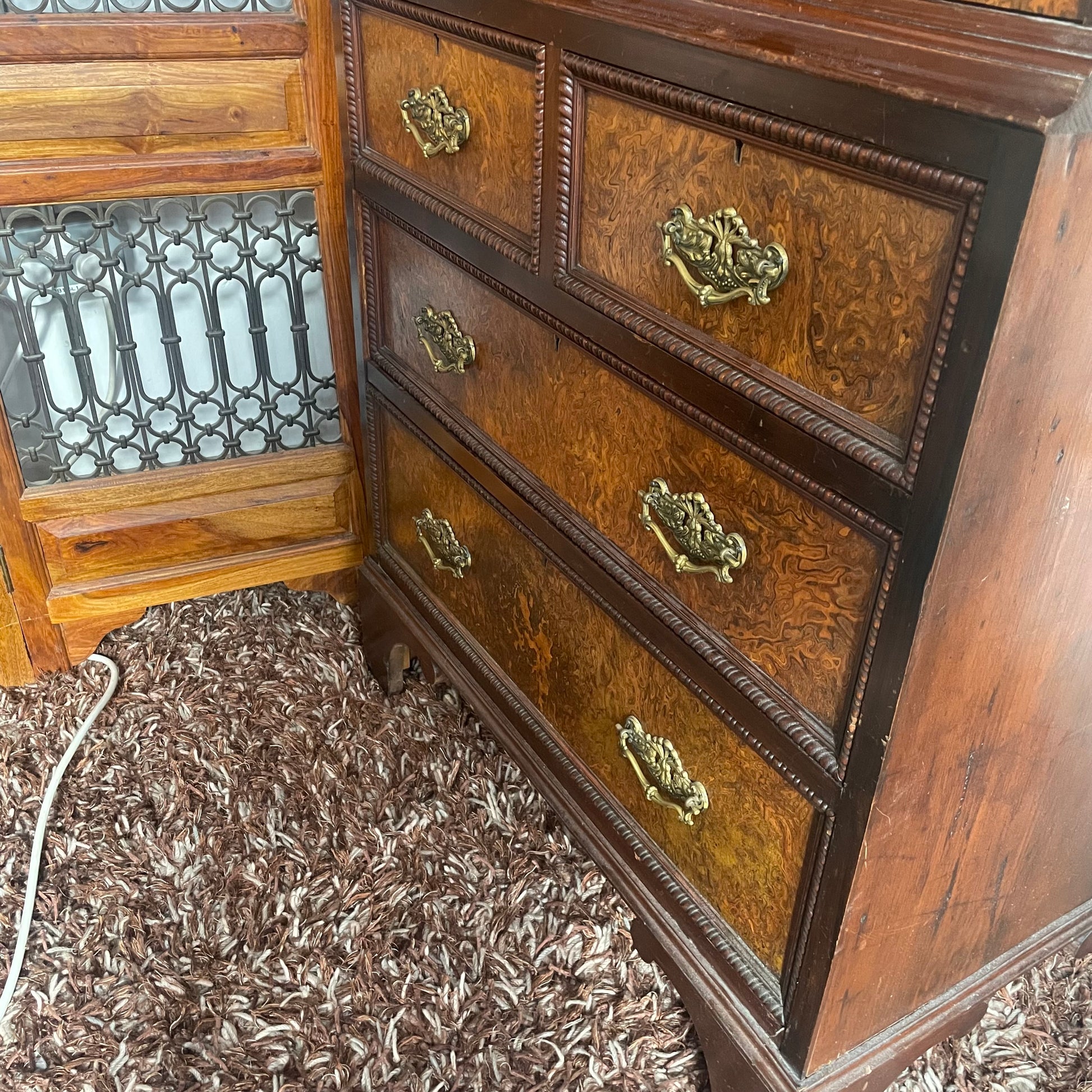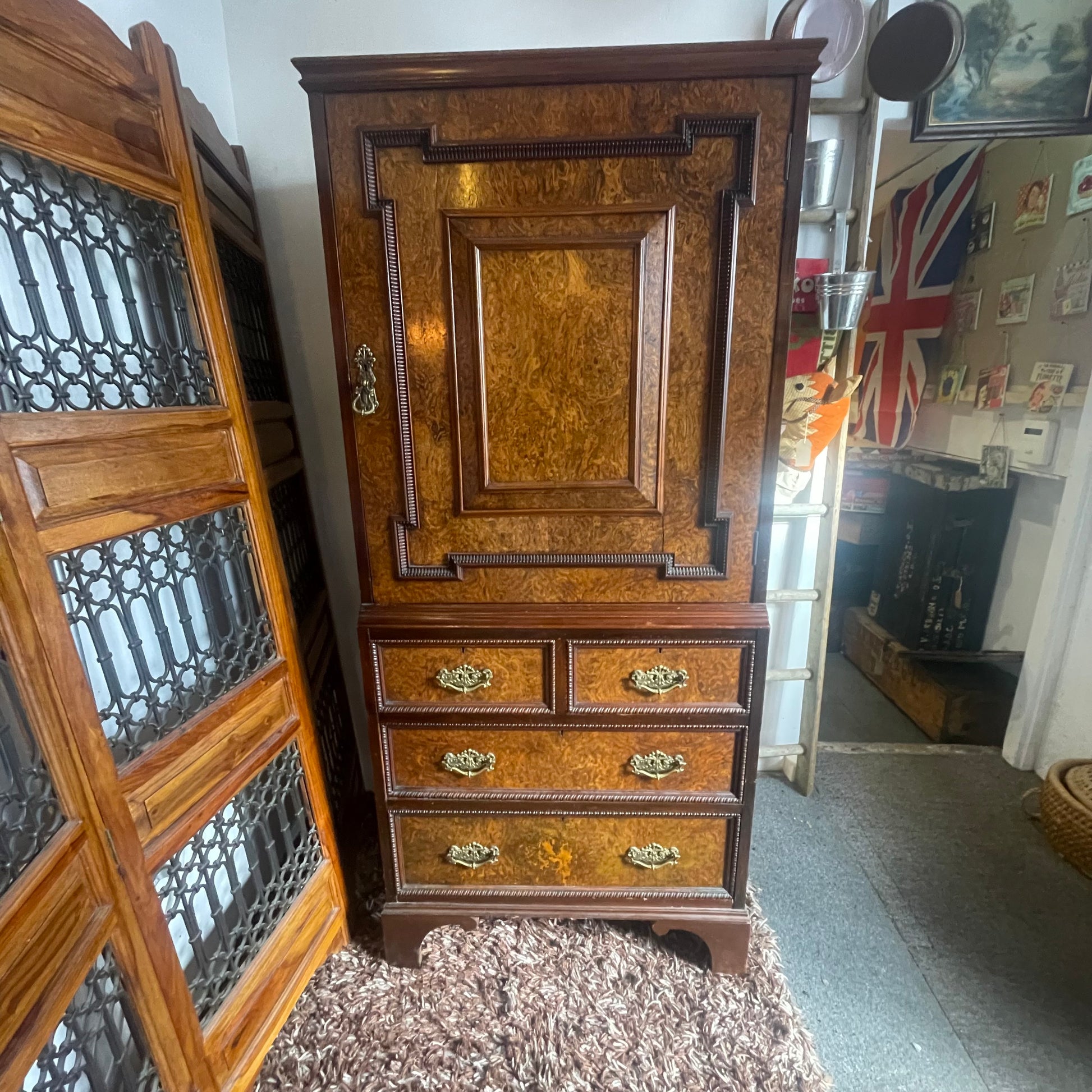 Antique Vintage Maple & Co Burr Walnut Linen Press Drawers / Cupboard