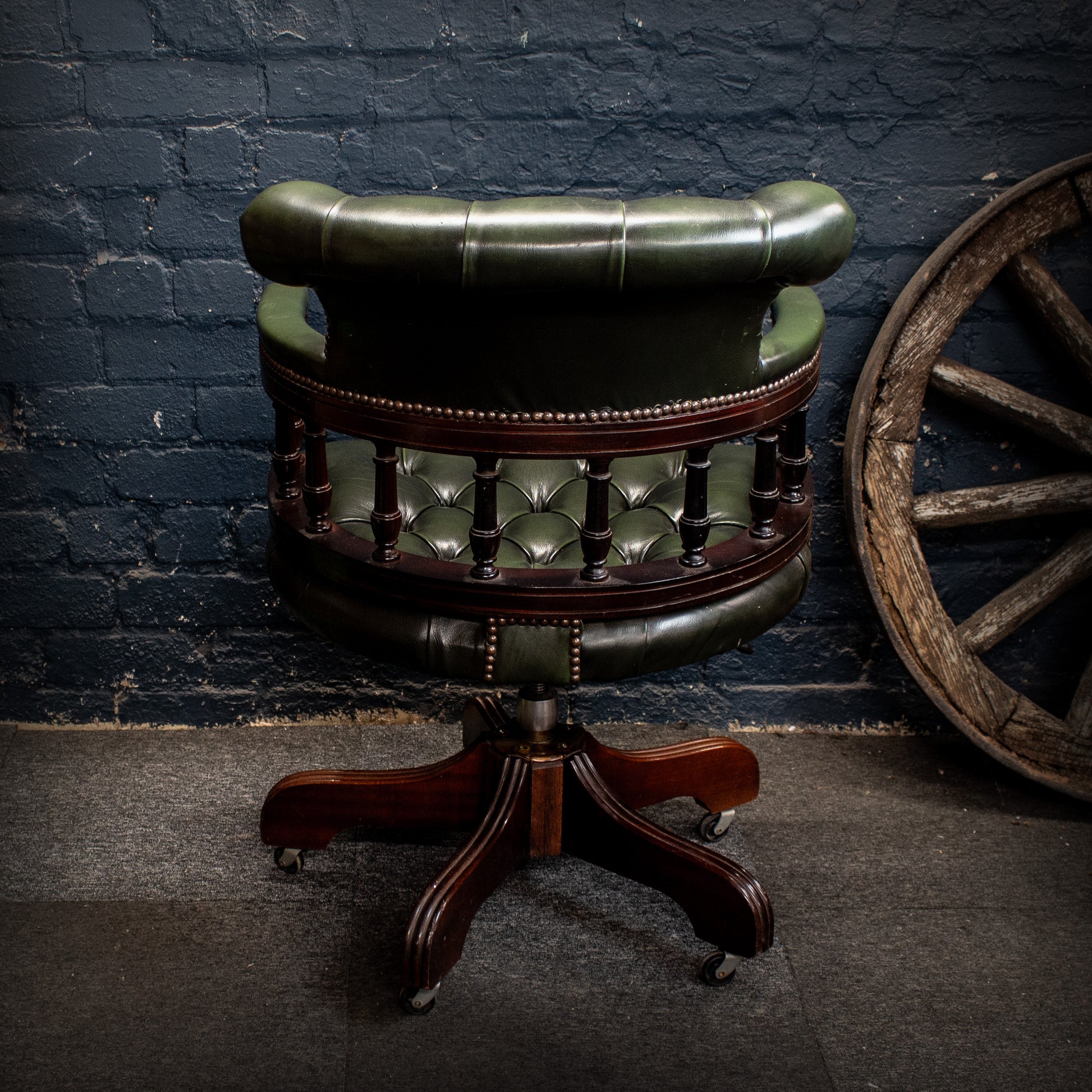 Antique Vintage Style Captains Swivel Green Leather Desk Chair