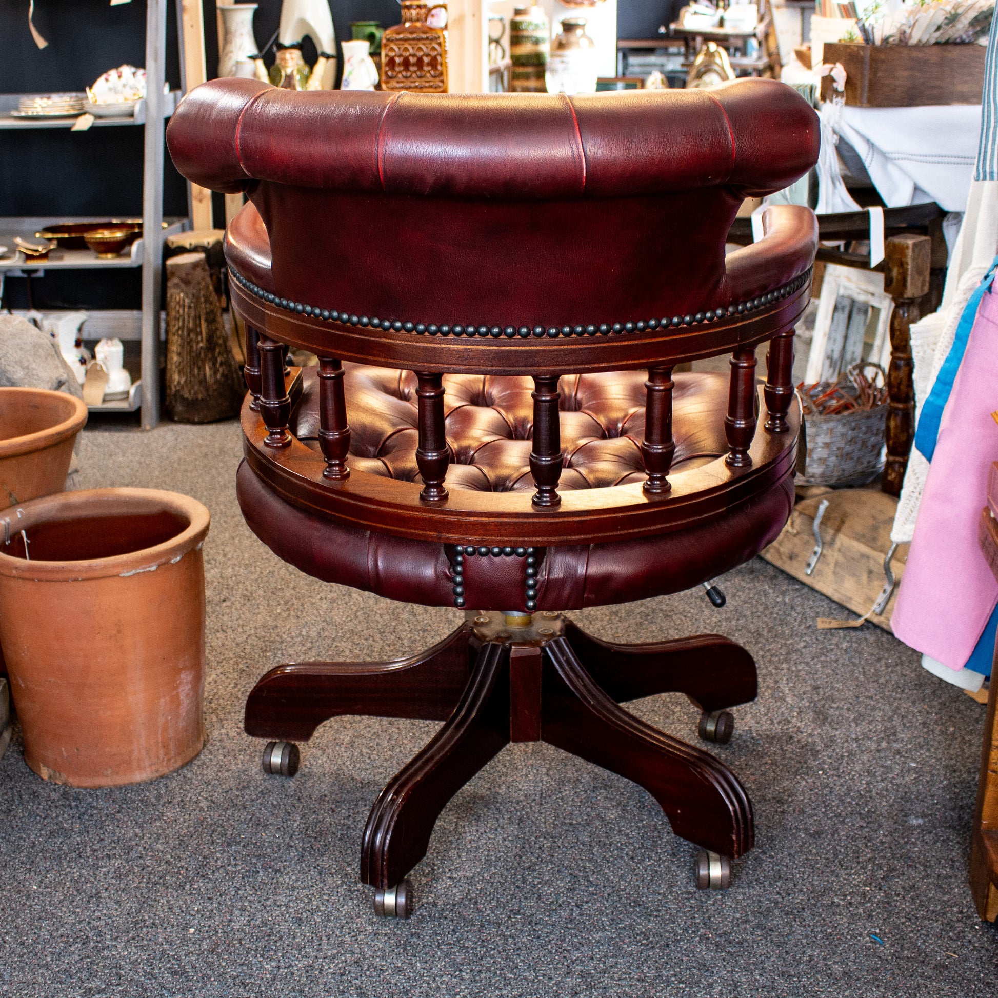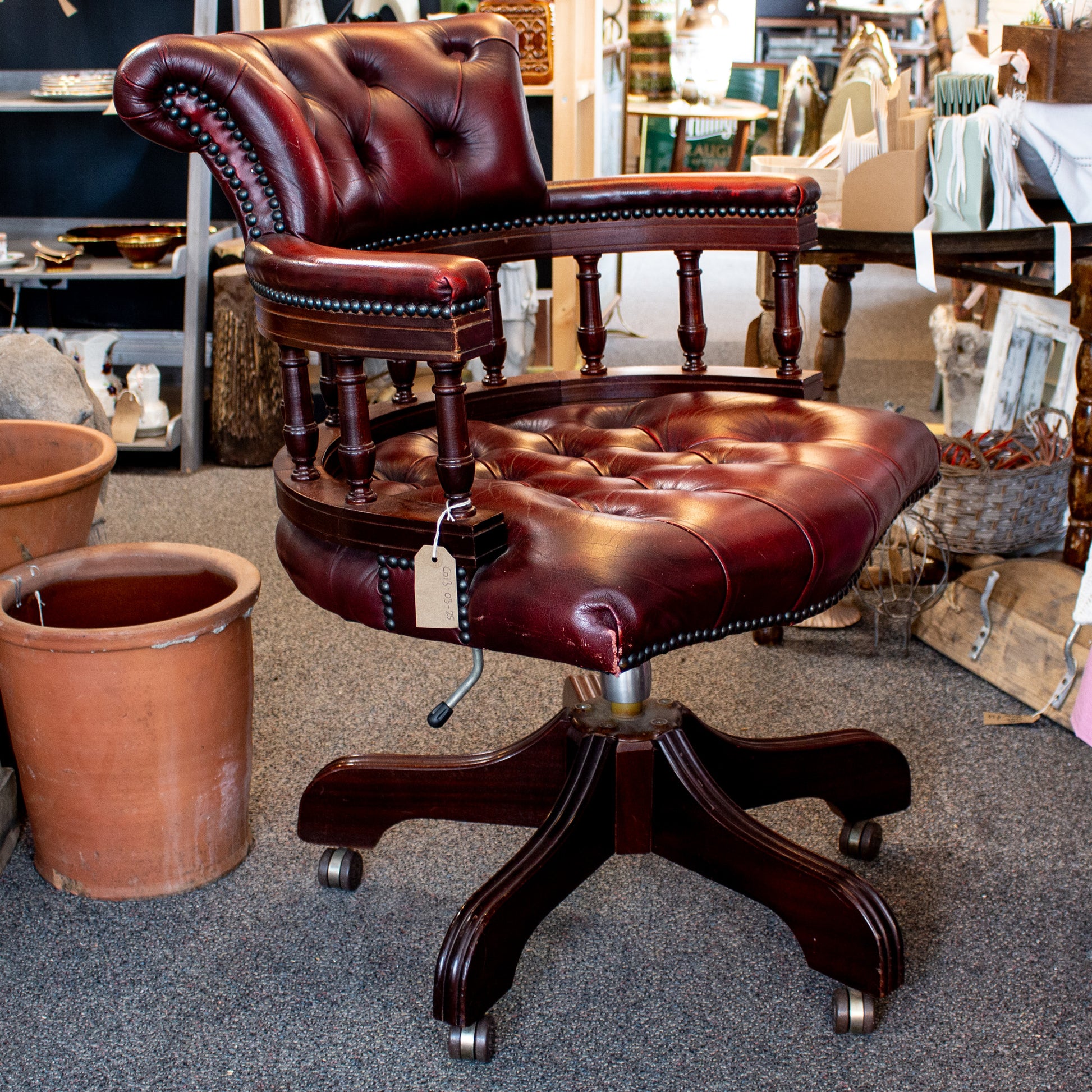 Antique Vintage Style Captains Swivel Red Leather Desk Chair