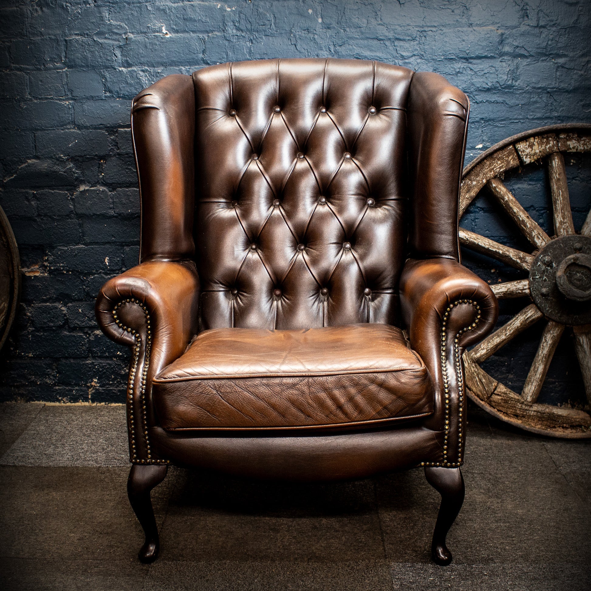 Brown Leather Vintage Chesterfield Style Wingback Armchair