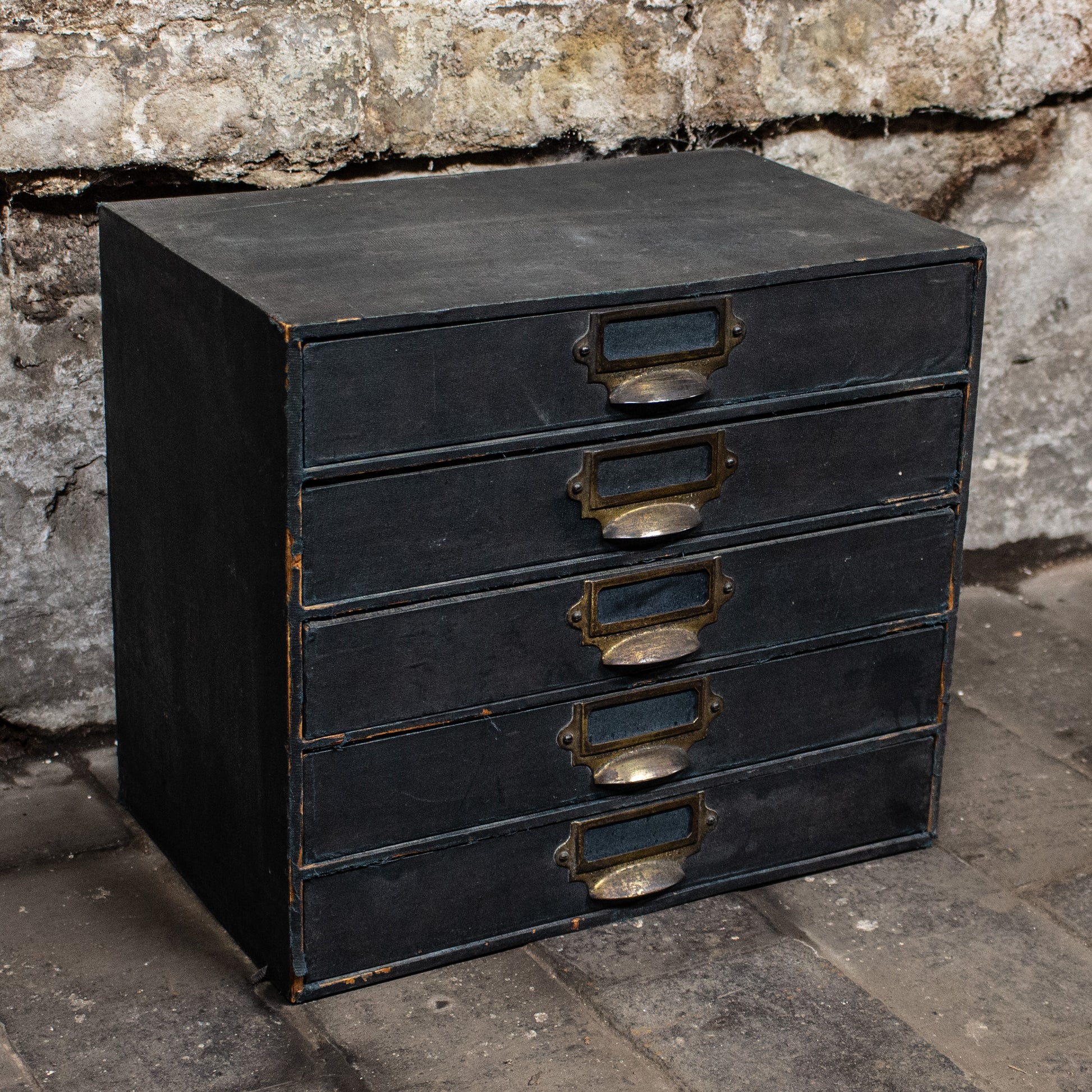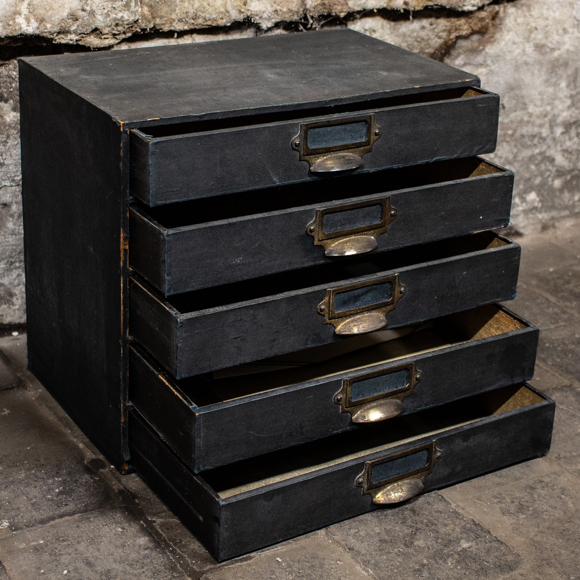 Vintage Blue Brass Handled Filing Cabinet Drawers