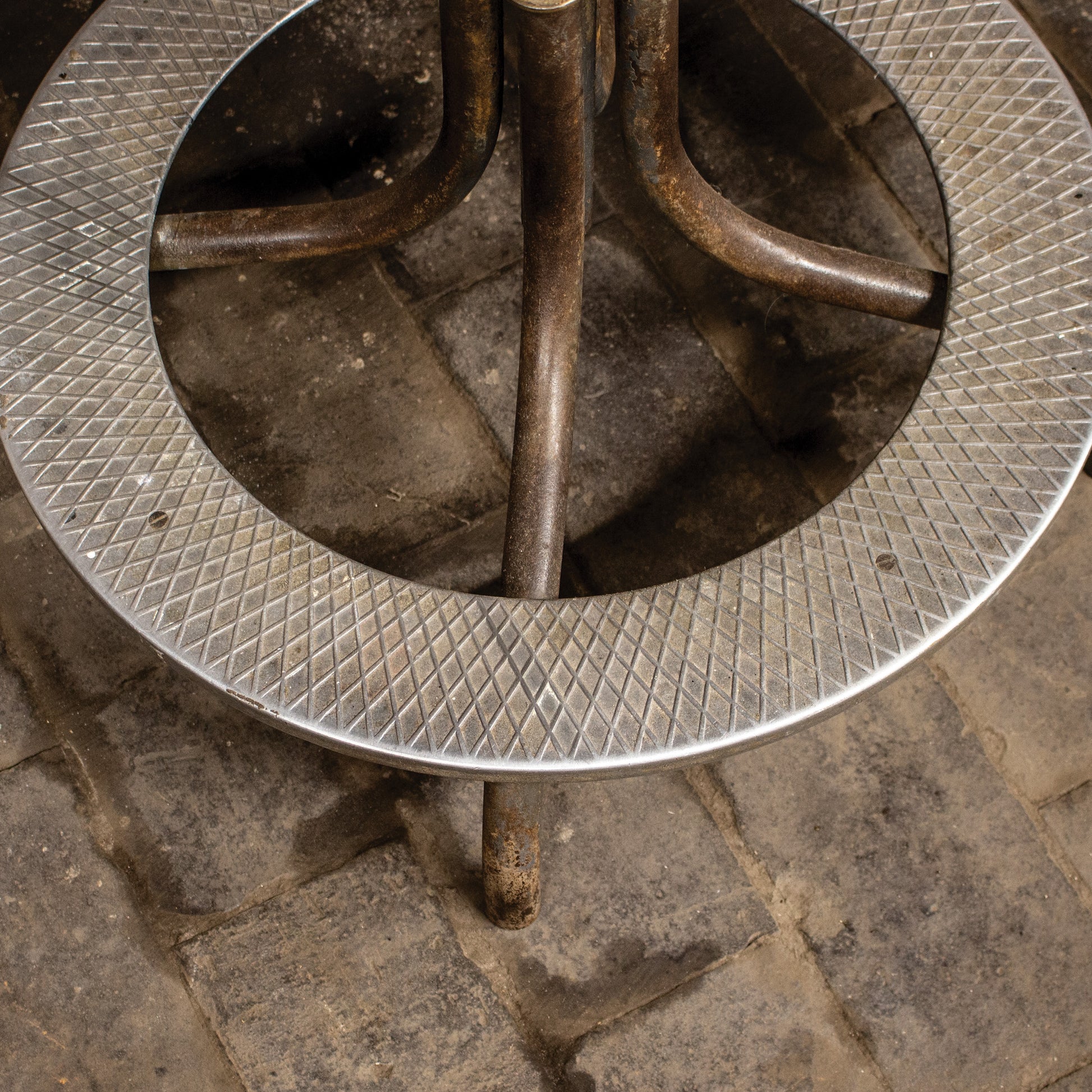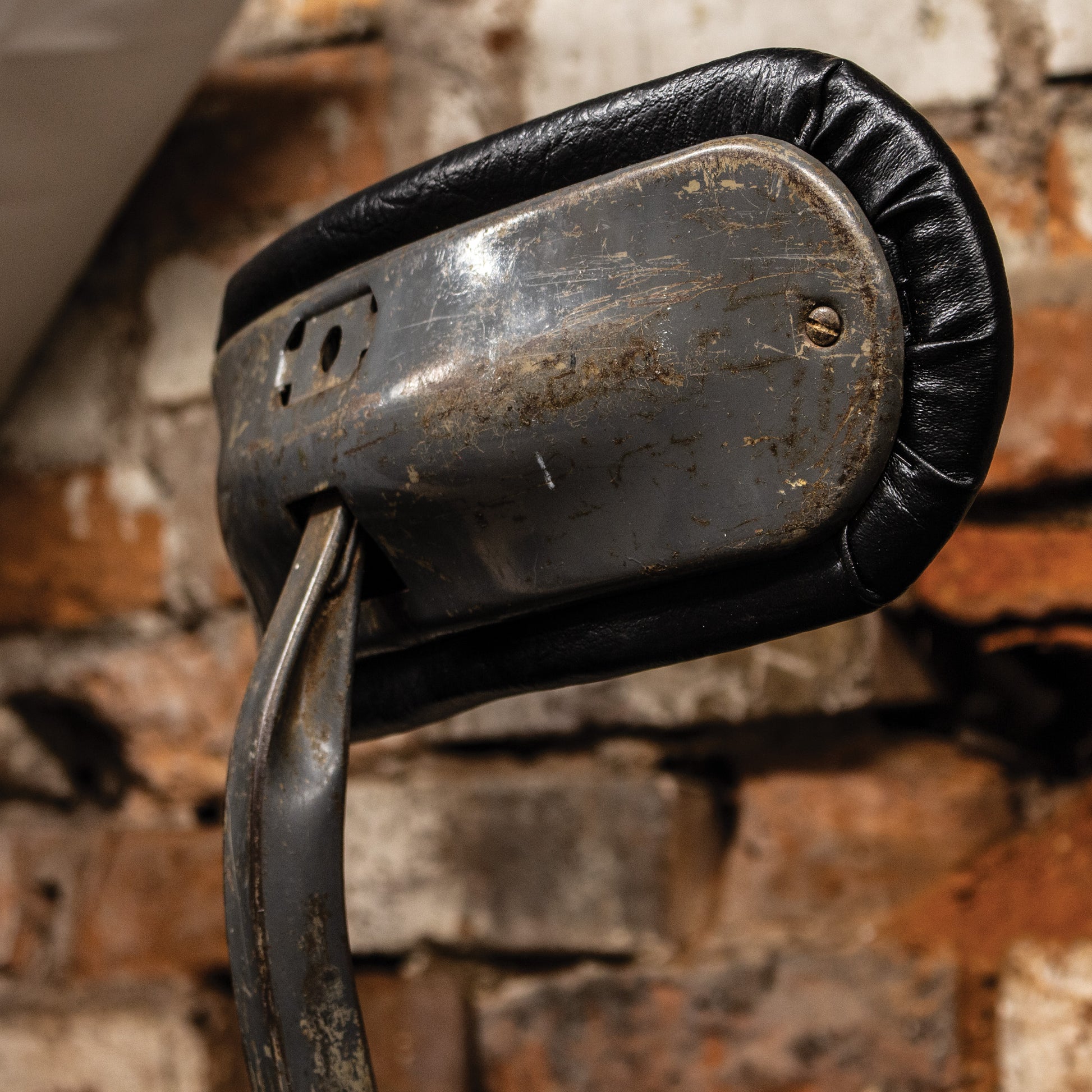 Vintage 'Tan Sad' Factory Machinist Swivel Chair A Perfect Industrial Addition To Any Home! Just Been Reupholstered In Faux Black Leather To Compliment The Original Aged Metal Frame! Both The Seat & Back Rest Are Height Adjustable!